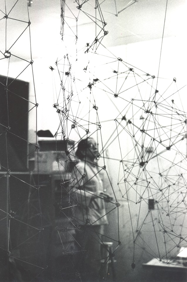 Born to a Jewish family in Hamburg in 1912, Gego (Gertrud Goldschmidt) was trained as an architect in Stuttgart before fleeing Nazi Germany for Venezuela in 1939. Her background in architecture continued to serve her when she turned to sculpture in the early fifties, her focus being upon the distribution of lines in space and the spaces in between.